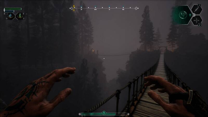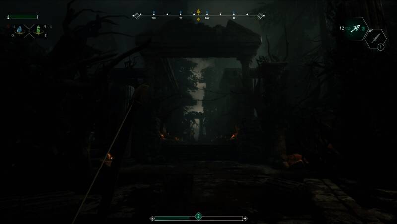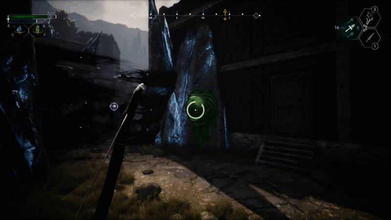 游戏的战斗系统融合了剑术、法术与弓箭三种战斗方式,玩家可自由搭配以应对不同敌人。剑术采用第一人称视角的连击机制,法术可用于控制敌人,而弓箭则能远程狙击弱点或摧毁关键目标如“黑暗之眼”。此外,游戏中还包含大量机械谜题与平台跳跃挑战,解谜可获得新能力,解锁隐藏区域,为探索增添策略性。