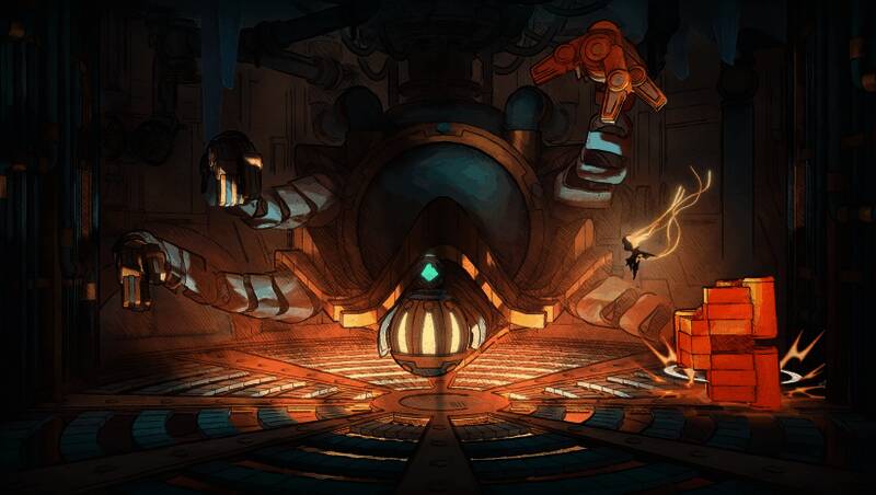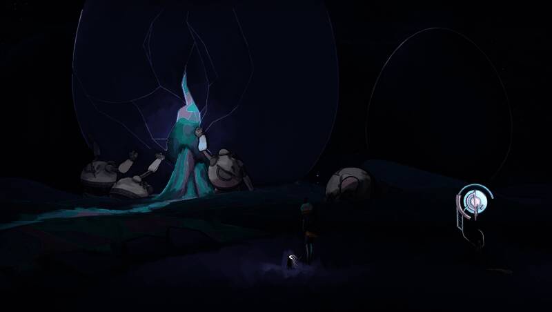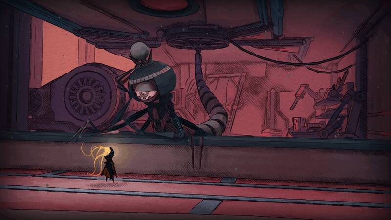 游戏在视觉表现上采用手绘风格,融合漫画线条、水彩背景与油画质感,营造出破败而瑰丽的赛博世界。锈蚀机械与葱郁植被形成强烈对比,构建出“腐朽奢华”的独特氛围。配乐方面则结合低保真电子节拍与空灵合唱,强化宇宙漂泊的孤寂诗意。动态光影与细腻环境交互进一步提升了整体沉浸感。