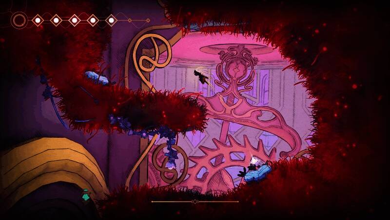 作为一款典型的银河恶魔城风格游戏,《秘奥:秘宇奥忆》融合了高速动作战斗与非线性地图探索。玩家可以使用钩爪、滑行、攀墙等技能穿梭于复杂地形,解锁隐藏区域。战斗系统采用模块化设计,通过击败30余种敌人获取组件,自由搭配15种机体元件,打造专属战斗风格。此外,15场多阶段Boss战考验玩家策略,部分谜题还需多次探索才能破解。