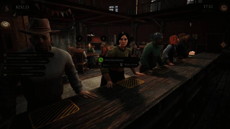 在《沙龙模拟器》中,玩家不仅要管理酒馆的日常运营,如调制饮品、烹饪食物、采购原料、维持库存,还需应对各种顾客的需求。每位顾客都有独特的背景和目的,与他们建立关系不仅能获得声誉和小费,还能解锁更多任务与剧情。此外,游戏还鼓励玩家走出酒馆,探索西部世界,参与各种小游戏和事件,体验更丰富的西部生活。