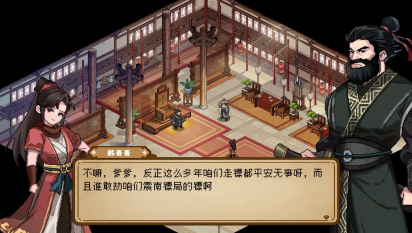 《三分保平安》是由无量工作室打造、2P Games发行的一款武侠题材像素风独立游戏,融合经营模拟、策略决策与RPG冒险元素。玩家将化身镖局大当家,在明朝架空江湖中重振衰败镖局,通过招募镖师、建设设施、押运货物与周旋势力,体验“带三分笑,让三分理,饮三分酒”的处世哲学。游戏不仅考验战术布局与资源管理能力,更以动态江湖生态和深度叙事,展现一个充满人情冷暖与权谋博弈的武侠世界。截至目前,该游戏在Steam愿望单收藏量已突破15万, indie玩家群体中热度持续攀升。