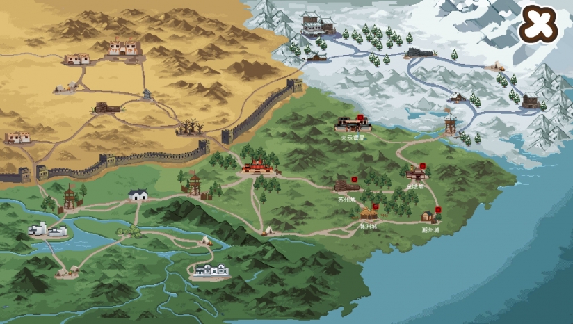 尽管采用复古像素美术风格,《三分保平安》在视觉与听觉表现上极具匠心。地图涵盖中原青瓦白墙、漠北黄沙古道、江南小桥流水等地域景观,每一帧皆精心绘制。配合定制二胡与古筝BGM,辅以地域特色音效(如闽南琵琶伴海浪声、东北雪乡笛鸣),营造浓厚氛围。练功房木人桩自动演练、铁匠铺熔炉火光跃动等细节动画,进一步增强武侠世界的沉浸感与生命力。