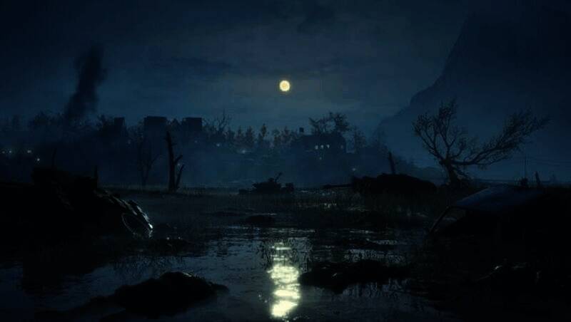 游戏采用独特的艺术风格,浓烈且富有表现力,黑暗色调与细腻的光影效果相互融合。阴暗的城镇、废弃的战场等场景细节丰富,传递出沉重的历史感和美学冲突。