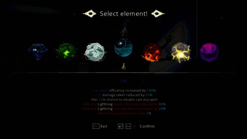 游戏特色显著。采用自动生成机制,每次游玩的场景布局、怪物分布等皆不相同;具备动作肉鸽玩法,死亡会失去收集物品,但有永久性升级可选;可解锁7位各具特色的元素魔法师;还能为法术和魔法武器添加附魔以增加特殊效果。