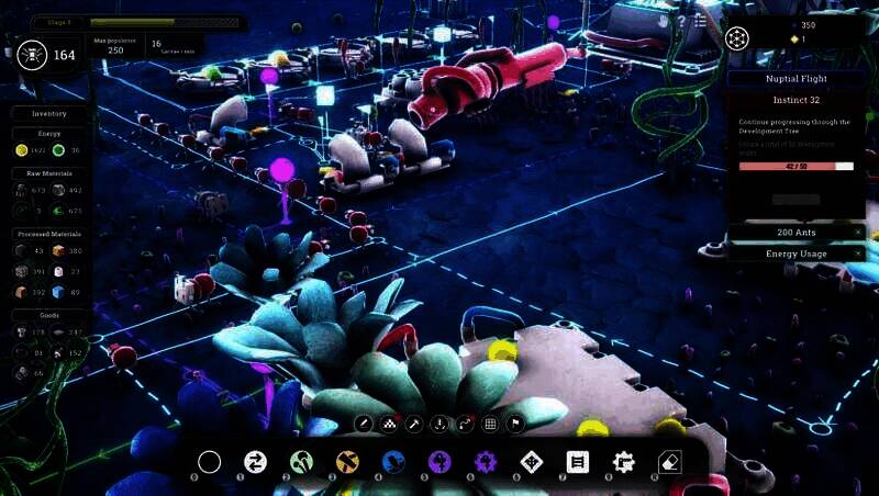 玩家需派遣工蚁去采集资源,建造各类建筑,为蚁后产卵提供支持,进而为蚁群社会增添新的劳动力。