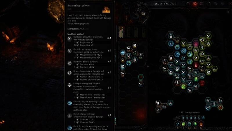 玩家通过获取战利品来获得各种技能,将这些技能放置在先祖网格的相应位置,从而对角色的参数进行调整、组合升级,以此塑造出独一无二的战斗风格。而且,玩家还能根据冒险的进度和自身偏好,随时更改角色的配装。