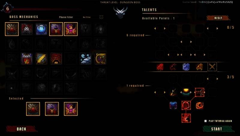 4、天赋:升级Boss解锁新卡牌和遗物。积累点数升级天赋树,每次开始前可自定义,调整Boss游戏风格。